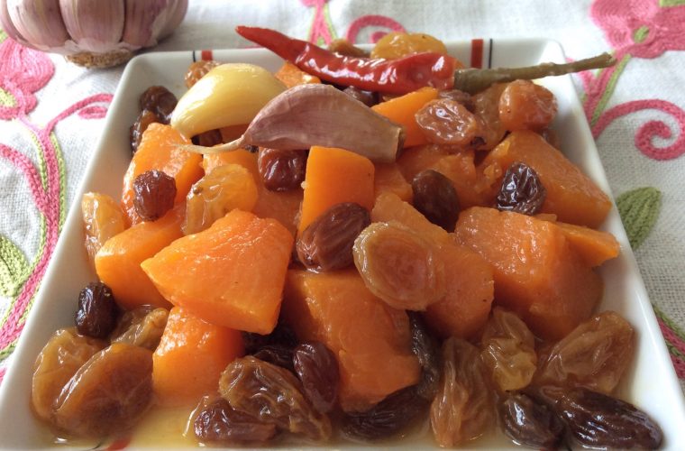 Potiron aux raisins secs – Qara3a hamra b’zbib