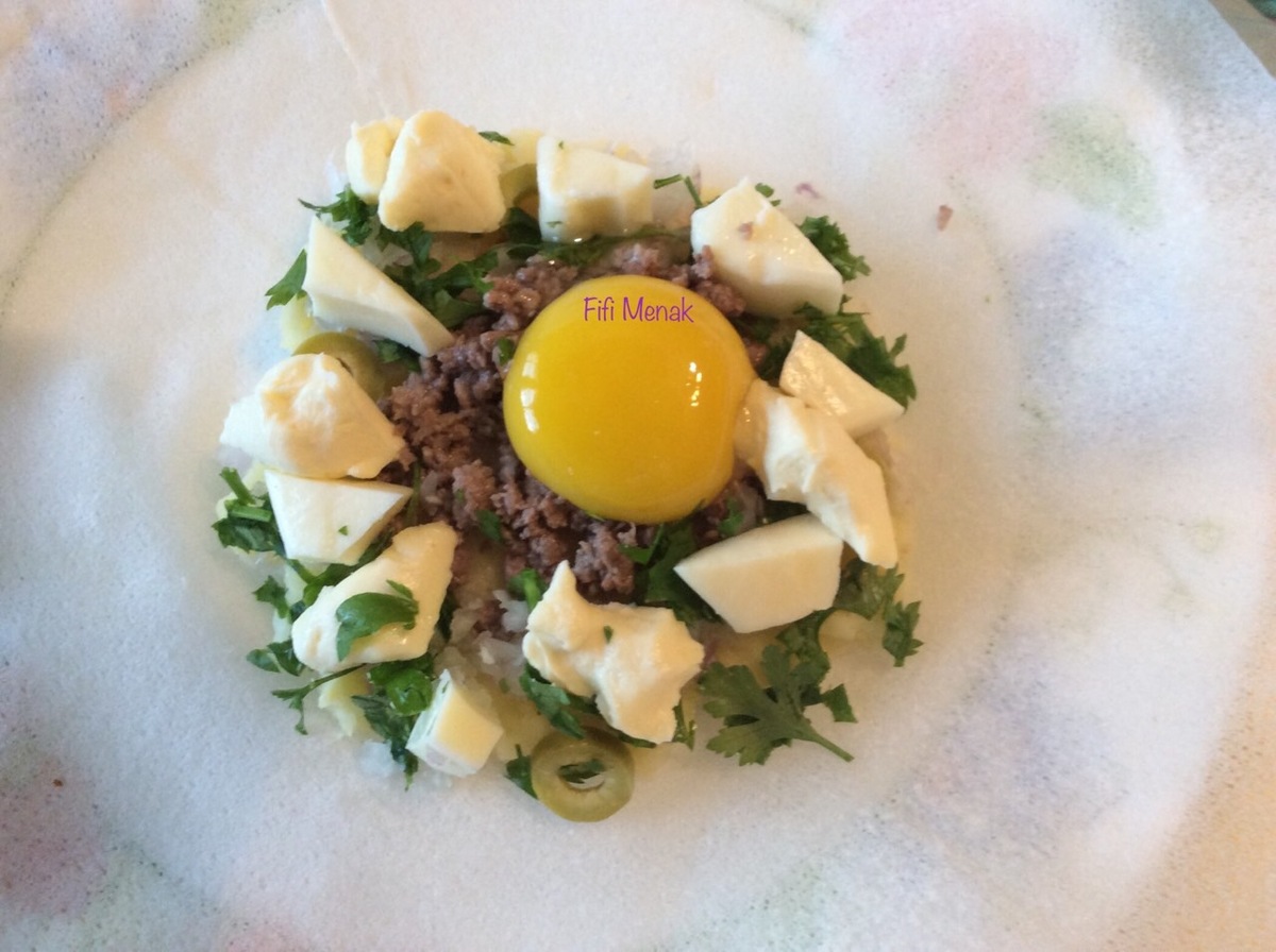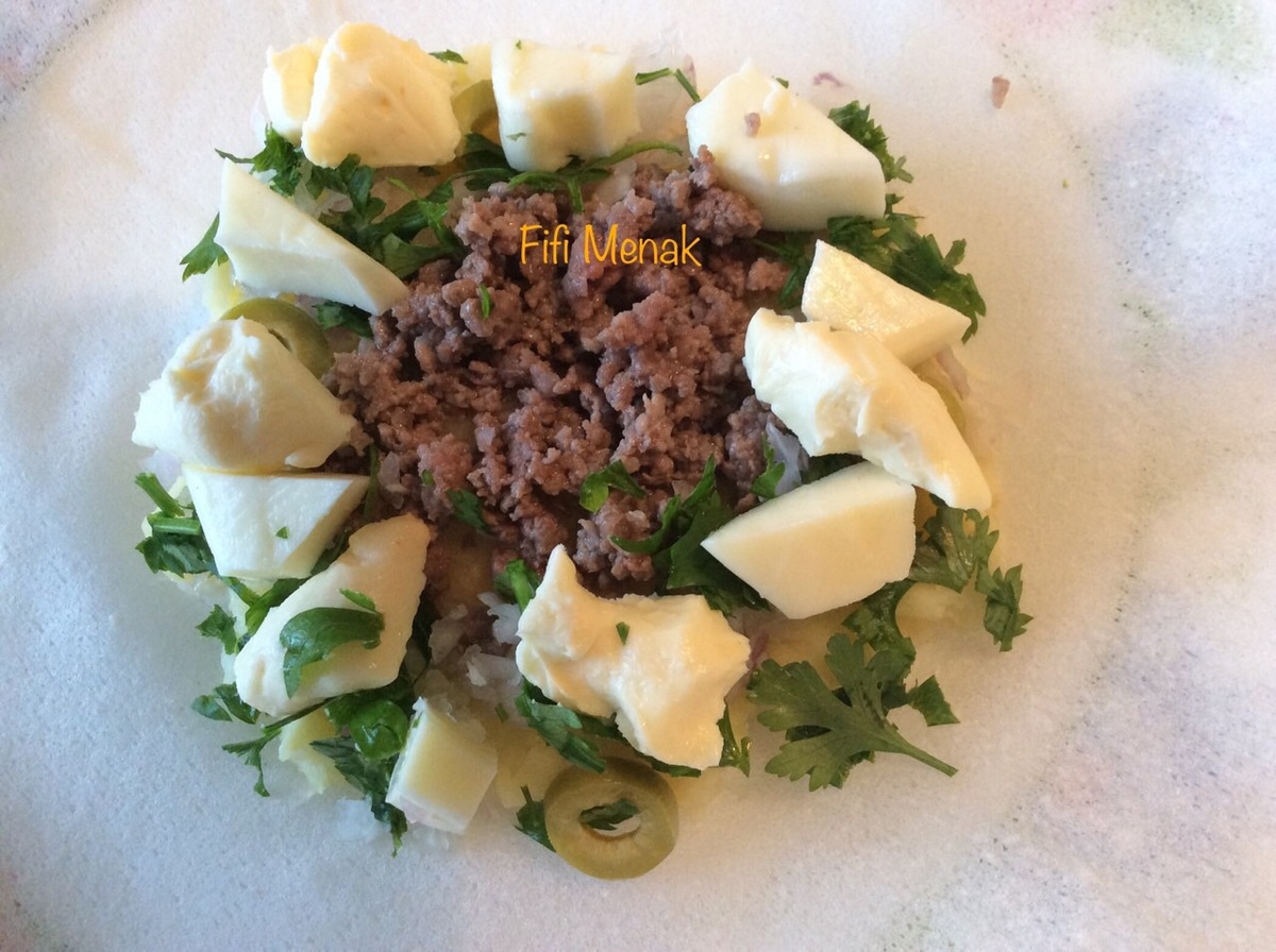 -Saisir une feuille entière de dioul (brick), ajouter un quart de feuille au centre.